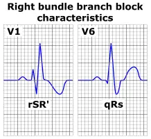 On peut le retrouver dans le syndrome de Brugada. Cependant, contrairement au bloc de branche gauche, lorsqu'il est isolé, il est généralement considéré comme bénin.