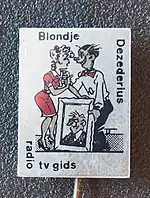 Épingle publicitaire avec les personnages de Bumstead et Blondie.
