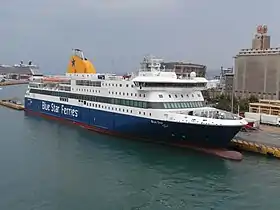 | Blue Star Ithaki | Ferry | 2000 | 2000-2014 | 10 193 UMS | 123,80 m | 18,90 m | 1 500 | 200 | 24 nœuds | Navigue actuellement pour la compagnie canadienne Bay Ferries sous le nom de Fundy Rose. | |