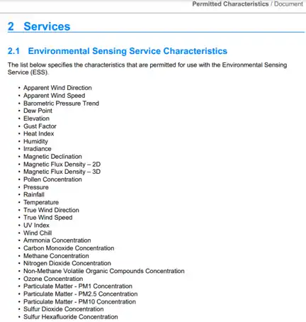- Environmental Sensing Service : spécification de la structure des données échangées[2]
