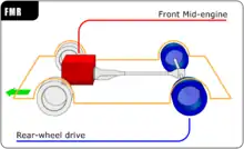 - leur disposition, transversale ou longitudinale, généralement choisie selon que le moteur est lui-même implanté transversalement (l'axe de rotation du vilebrequin est parallèle à l'axe de rotation des roues) ou longitudinalement ;