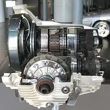 Pour cela, la boîte est donc en réalité constituée de deux demi-boîtes traditionnelles à engrenages parallèles dont la première demi-boîte se compose des rapports impairs (1-3-5) et de la marche arrière, alors que la deuxième utilise les rapports pairs (2-4-6). Deux embrayages humides concentriques sont ainsi utilisés pour transmettre le couple moteur à leur arbre primaire respectif ; ce couple n'est transmis qu'à un seul embrayage à la fois hors passage des rapports, phase durant laquelle l'on passe progressivement de l'un à l'autre. Tout l'intérêt de cette architecture particulière est de pouvoir engager deux rapports au même moment et de n'avoir qu'à « aiguiller » le couple vers l'un des deux embrayages pour passer au rapport suivant.