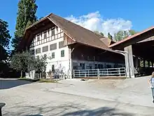 Une importante ferme, bâtie dans le style de l’architecture rurale bernoise, présente un volume considérable et a été élevée en 1930 (date sur le fronton méridional).
