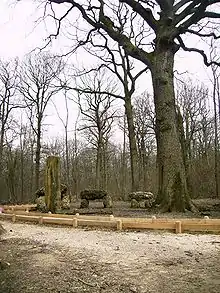 - le chêne des Missions (l'un des arbres les plus vieux de la forêt) et ses mégalithes (érigés en 1895 par des missionnaires de Meudon, d'origine bretonne)