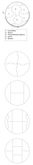 La mèche est donc liée à d'autres pièces de bois par un système d'entailles, d'adents et d'écarts, dont la combinaison constitue la solidité nécessaire[1],[5]; sur la mèche on forme des adents saillants et rentrants pour recevoir les adents correspondants des autres pièces qu'on assemble dans la confection arrondie de ce mât[5]. Le plus gros bout de la mèche restant entier fournit le ton (tête du mât) nécessaire au mât; lorsqu'un mât brut n'est pas assez long pour faire une mèche en entier on le joint à un autre par un écart très longs[5].