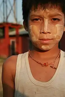 Le thanaka (birman : သနပ်ခါး, MLCTS=sa. nap hka:) est une pâte cosmétique blanc-jaune d'origine végétale couramment utilisée au Myanmar pour couvrir le visage et parfois les bras des femmes et des filles, et dans une moindre mesure des hommes et des garçons[1], [2], [3]. Son usage remonterait à plus de 2000 ans. Il s'est aussi diffusé dans les pays voisins, comme la Thaïlande[2], [3]. À Madagascar, une poudre similaire est appelée masonjoany.
