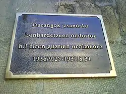On connait comme bombardement de Durango l'action de guerre menée le dans l'offensive du front nord qu'ont effectué les troupes appelées « nationales » au printemps de cette année dans la guerre civile espagnole. La ville biscaïenne de Durango au Pays basque (Espagne), a été bombardée et mitraillée par l'aviation fasciste sous les ordres du général Emilio Mola.