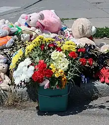 Fleurs et jeux d'enfants sur le site des bombardements. Juillet 2022.