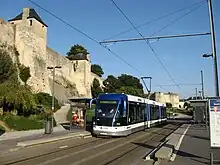 TVR de Caen, équipé d'un pantographe sur la caisse centrale (caisse C).
