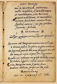 - De litteris et lingua Getarum sive Gothorum ; item de notis Lombardicis quibus accesserunt specimina variarum linguarum, Leyde, 1597, in-8°.Ouvrage rare et curieux, dont on ne connait pas l’auteur. L’abbé Banier, dans sa continuation des Mélanges de Vigneul-Marville (Bonav. d’Argonne), l’attribue à Antoine Morillon, secrétaire du cardinal de Granvelle, mais Barbier regarde cette allégation comme douteuse, et il n’a pas cru devoir la reproduire dans la seconde édition du Dictionnaire des anonymes.