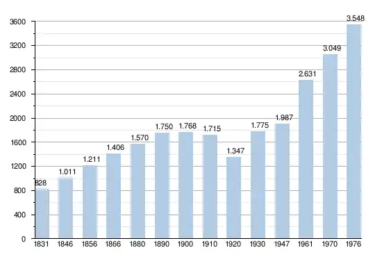 - Sources : INS, Rem. : 1831 jusqu'en 1970 = recensements, 1976 = nombre d'habitants au 31 décembre.