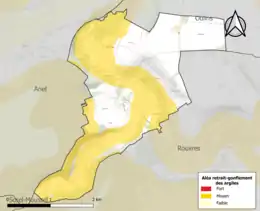Le retrait-gonflement des sols argileux est susceptible d'engendrer des dommages importants aux bâtiments en cas d’alternance de périodes de sécheresse et de pluie. 52,7 % de la superficie communale est en aléa moyen ou fort (52,8 % au niveau départemental et 48,5 % au niveau national). Sur les 152 bâtiments dénombrés sur la commune en 2019, 86 sont en aléa moyen ou fort, soit 57 %, à comparer aux 70 % au niveau départemental et 54 % au niveau national. Une cartographie de l'exposition du territoire national au retrait gonflement des sols argileux est disponible sur le site du BRGM[22],[Carte 2].