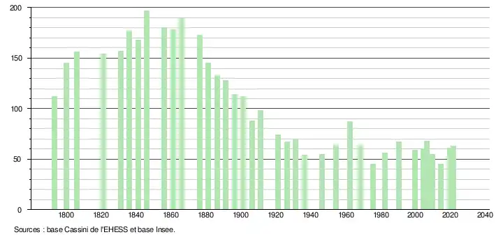 (Sources : Ldh/EHESS/Cassini jusqu'en 1999[20] puis Insee à partir de 2006[21].)