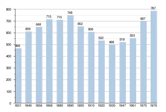 - Sources:INS, Rem:1831 jusqu'en 1970=recensements, 1976= nombre d'habitants au 31 décembre