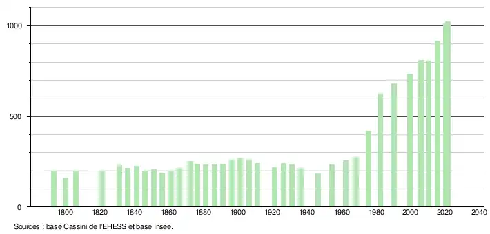 En 2021, la commune comptait 1 024 habitants[Note 3], en augmentation de 11,79 % par rapport à 2015 (Gironde : +6,88 %, France hors Mayotte : +1,84 %).