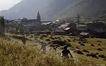 Au VIIIe siècle, de nouveaux habitants semblent s'installer dans la vallée de Bessans et qu'on assimile aux Sarrasins[23]. Henri Onde, rappelle que l'existence de toponymes comme « mines des Sarrasins » à Bonneval, « rocher (ou mur) des Sarrasins » à Lanslevillard, « grotte des Sarrasins » à Bramans ou encore la « Mine des Sarrasins » à Fréjus « rentrent dans la catégorie de ces vestiges d'occupation humaine de date inconnue auxquels l'imagination populaire a accolé un nom rendu fameux, dans le folklore du Moyen Âge, par les croisades d'Orient et d'Espagne »[19]. Il explique ainsi la méfiance vis-à-vis de leurs voisins bessanais installés en aval qu'ils « regardent [...] comme des descendants des Sarrasins et affirment, en ce qui les concerne, que leur village a été fondé par des montagnards du Val de Rhême venus primitivement exploiter les pâturages dans le haut bassin de l'Arc. »[19]. On retrouve cette animosité entre les deux communautés au cours de l'histoire ; elle est d'ailleurs relevée par l'Intendant de Maurienne qui note en 1759 cette « vieille et forte antipathie »[19].