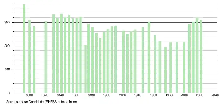 309 hab. (2021 en diminution de 0,64 % par rapport à 2015)
