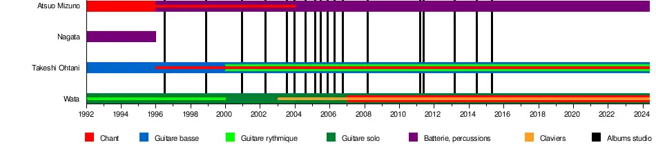 - Takeshi Ohtani – chant, guitare basse, guitare rythmique (depuis 1992)