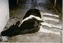 Au niveau des trayons, les virus peuvent provoquer des herpès, des papillomes et des tumeurs induites par des parapox. Les maladies virales peuvent parfois être très contagieuses et poser des problèmes dans les élevages. C'est le cas de la rage, une maladie du système nerveux enrayée dans de nombreux pays, de la fièvre aphteuse et de la fièvre catarrhale[45]. En Afrique, des maladies telles que la fièvre de la vallée du Rift peuvent également se développer au cours d'épidémies importantes[46]. Les bovins font partie des animaux sauvages dont la protéine-cible du nouveau coronavirus pandémique de 2019 (l' ACE2), est adapté à ce nouveau virus (SARS-CoV-2)[47] (virus responsable en 2019 de la pandémie de COVID-19). Cette affirmation (mai 2020) est théorique ; elle découle d'études de modélisations de protéines et reste à confirmer in vivo.