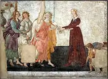 L'année suivante, en 1483, Botticelli reçoit la commande des Médicis pour quatre panneaux de cassone avec l'Histoire de Nastagio degli Onesti, tirée d'une nouvelle du Décaméron. Peut-être commandées directement par Laurent le Magnifique, elles sont un cadeau pour le mariage célébré entre Giannozzo Pucci et Lucrezia Bini la même année.