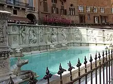 - Entre 1081 et 1250, période de construction des infrastructures et édifices pour chacune des fontaines de Fonte Branda, Fonte Ovile, Fonte Nuova, Fonte Pescaia et Fonte Follonica. Ces fontaines étaient alimentées par des sources[4];
