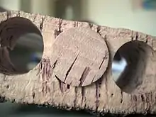 Planche de liège, avec un bouchon taillé à l'emporte-pièce.