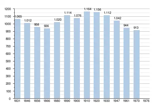 • Sources : INS, Rem. : 1831 jusqu'en 1970 = recensements[3].
