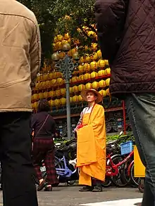 Au xviie siècle, les monastères de Séra, Drépoung, Ganden, au Tibet, pouvaient recevoir 7000 à 8000 moines. Ces communautés vivaient rarement d’aumônes, sauf à l’occasion de pèlerinages entrepris pas les moines[44].