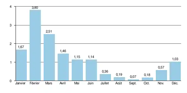Les crues sont parfois assez importantes. La série des QIX n'a jamais été calculée étant donné la trop faible durée d'observation des débits de la rivière.