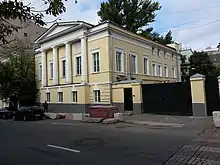 - no 14 — Hôtel particulier de la comtesse E.P. Rostopchine (début du XIXe siècle; 1870, architecte Andreï Stratilatov), inscrit au patrimoine régional[7]. Dans les années 1840, l'hôtel particulier appartenait à Nikolaï Pavlov qui recevait tous les jeudis les membres éminents de la société littéraire et philosophique de Moscou. Ces soirées étaient appelées les « Jeudis de Pavlov ». On pouvait y croiser Gogol, le prince Baratynski, Polonski, Fet, Khomiakov, Chevyriov, Tchaadaïev, Krioukov, etc. Les Kireïevski et le jeune Samarine y sont venus aussi. Plus tard l'hôtel particulier a appartenu à E.F. Mattern.