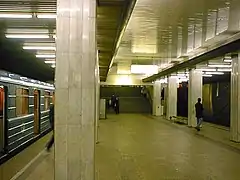 La station, peu profonde, a été conçue par les ingénieurs A. Krivenko, Nikolaï Levine, T. A. Jarova et les architectes Nina Alechina et N. K. Samoïlova. Les murs verticaux sont recouverts d'aluminium à dominante dorée avec des motifs géométriques. Le quai central dispose à droite et à gauche d'une série de 26 piliers en béton armé recouverts de marbre blanc[5].