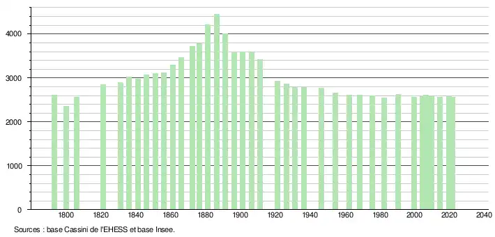 2 554 hab. (2021 en diminution de 0,08 % par rapport à 2015)