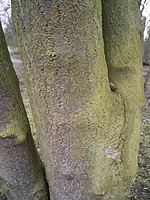L'écorce se dédouble facilement : l'externe est brun-noir, l'interne est verte. De nombreuses lenticelles grisâtres et allongées sont apparentes en surface ; l'écorce exhale une odeur forte et désagréable[réf. nécessaire].