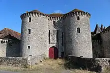 Se dresse sur la façade sud, deux logis : l'un résidentiel situé à l'est, et l'autre, militaire, fut construit à l'ouest. Ce dernier communiquait par un pont-levis avec la tour sud-ouest, isolée, qui servait de donjon.