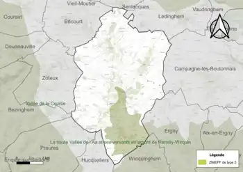 Le territoire communal comprend une ZNIEFF de type 2[Note 1] : la haute vallée de l’Aa et ses versants en amont de Remilly-Wirquin. La haute vallée de l’Aa se rattache à l’entité paysagère des hauts plateaux artésiens, elle intègre la source de ce fleuve côtier situé à Bourthes et les premiers kilomètres de ce cours d’eau qui trace un sillon profond dans les collines de l'Artois[10].