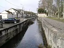 Barrage et vannes en amont du bassin de slalom de Bernouët à Saint-Jean-d'Angély. Écluse à gauche. | |