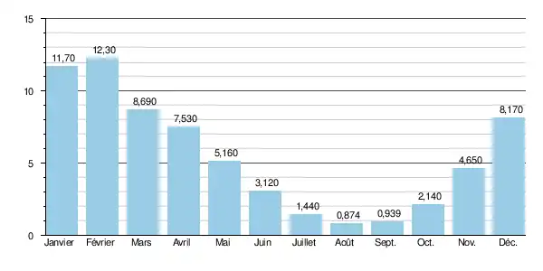 - Débit de pointe lors de la crue de décembre 1982 : 220 m3/s mesuré au barrage de Carillon