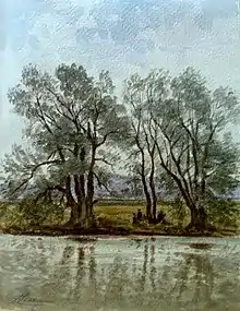 - Antoine Vierling[53] (1842, 1917), peintre et professeur de dessin, avait une maison de campagne à Bouxières-aux-Dames. Il fut exposé au Salon de Nancy, au Salon de Paris ainsi qu'au Salon de Remiremont. Il a peint Près Bouxières, un tableau exposé au Salon des Artistes Lorrains de 1874, Un ruisseau sous bois (Bouxières-aux-Dames), Coucher de soleil (Bouxières-aux-Dames), La mare aux hérons (Bouxières-aux-Dames), exposés en 1876 et Coin de Bouxières-aux-Dames, un tableau également exposé au Salon des Artistes Lorrains de 1911.