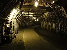 - Cette pente a deux raisons essentielles : faciliter la circulation des wagonnets chargés et, éventuellement, ramener l'eau vers le puits.