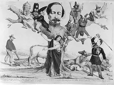 Le comte Cavour espère faire céder le Pape face la poussée unitaire et le soutien de la population romaine. La convention n'est pas conclue en raison de la mort de Cavour le .