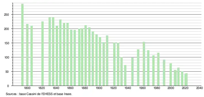 (Sources : Ldh/EHESS/Cassini jusqu'en 1999[20] puis Insee à partir de 2006[21].)