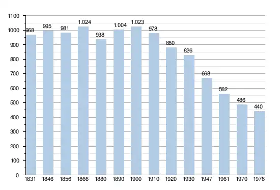 • Sources : INS, Rem. : 1831 jusqu'en 1970 = recensements, 1976 = nombre d'habitants au 31 décembre.