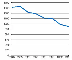 En 2002, l'âge moyen de la population était de 41 ans pour les hommes et 44,6 ans pour les femmes[3].