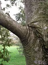 - Si deux branches sont codominantes (même taille que la branche maîtresse), sa crête est droite. Si les branches sont commandées par la dominance apicale, la crête est oblique, prenant la forme d'une « moustache chinoise » . Cf (en) Bob Watson, Trees. Their Use, Management, Cultivation and Biology, Crowood, (lire en ligne), p. 121.