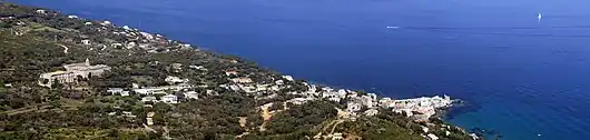 La commune comporte plusieurs lieux habités[18], deux marines et cinq anciens villages médiévaux tous desservis par la route D 54 et la bretelle D 254 qui aboutit à Silgaggia.
