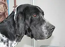 La longueur du museau est légèrement inférieure ou égale à celle du crâne. La largeur au niveau des arcades zygomatiques est égale à la longueur du crâne. Les lignes du crâne et du chanfrein sont légèrement divergentes vers l’avant. La tête est longue, proportionnée à la taille, un peu plus légère chez les femelles. Vue de dessus, la forme du crâne se rapproche de l’ovale. La protubérance occipitale est peu saillante. Le stop est moyennement marqué, l'arcade sourcilière est bien prononcée[2].
