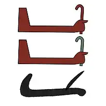 Il représente un bras tendu tenant un petit objet en forme de bâton plus ou moins recourbé vers l'arrière de couleur verte ou plus rarement rouge. Il est translittéré ḫȝj ou nḫt.