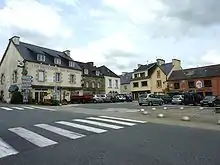 Le bourg apparaît perché depuis la route du Faou. | |||||