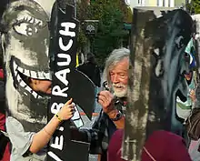 « Les parades contre la guerre dans le centre de New York ont parfois provoqué des gestes d'hostilité ou des moqueries, les gens pensaient qu'on se cachait derrière des marionnettes parce que nous avions honte de montrer nos visages. Il y a eu aussi des violences contre nous. On nous a volé la poupée qui représentait l'enfant Jésus brûlé au napalm. Les réactions du public sont imprévisibles. Lorsque le Bread and Puppet a organisé des défilés pour protester contre les loyers, nous avons eu du mal à faire comprendre aux habitants des quartiers pauvres que c'était pour les aider[62]. »