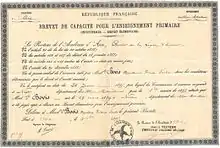 Un brevet élémentaire de 1895.